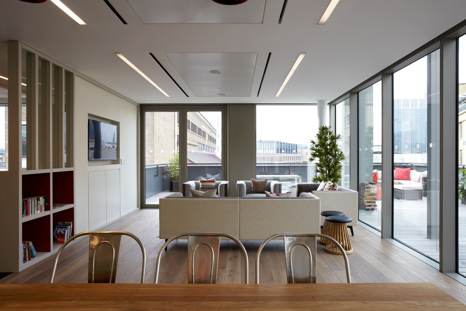 BDGG_3227Communal seating, dining and meeting area in the the new South London office of a global media company.