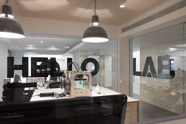 The 3-D printer in the Lab at the newly completed London offices of digital agency, Possible Worldwide. Interior architecture by BDG A+D.