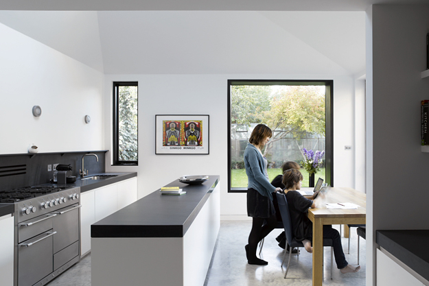 Interior of a recently completed pavilion in North London, designed by award-winning practice Liddicoat & Goldhill.