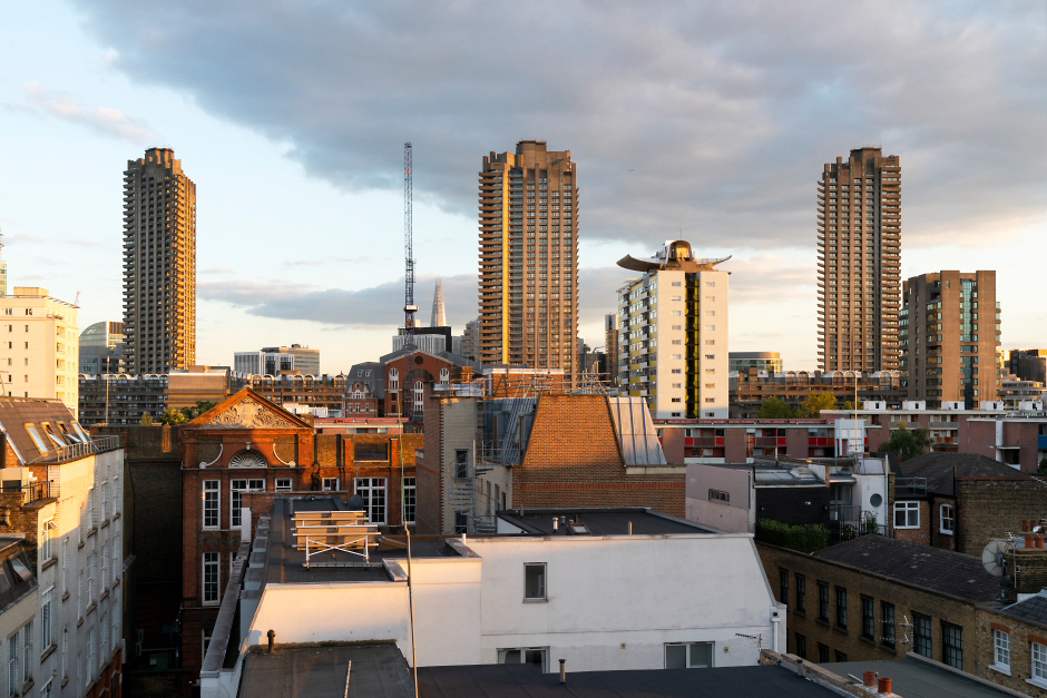 Parapet view towards the Golden Lane and Barbican estates, City of London.